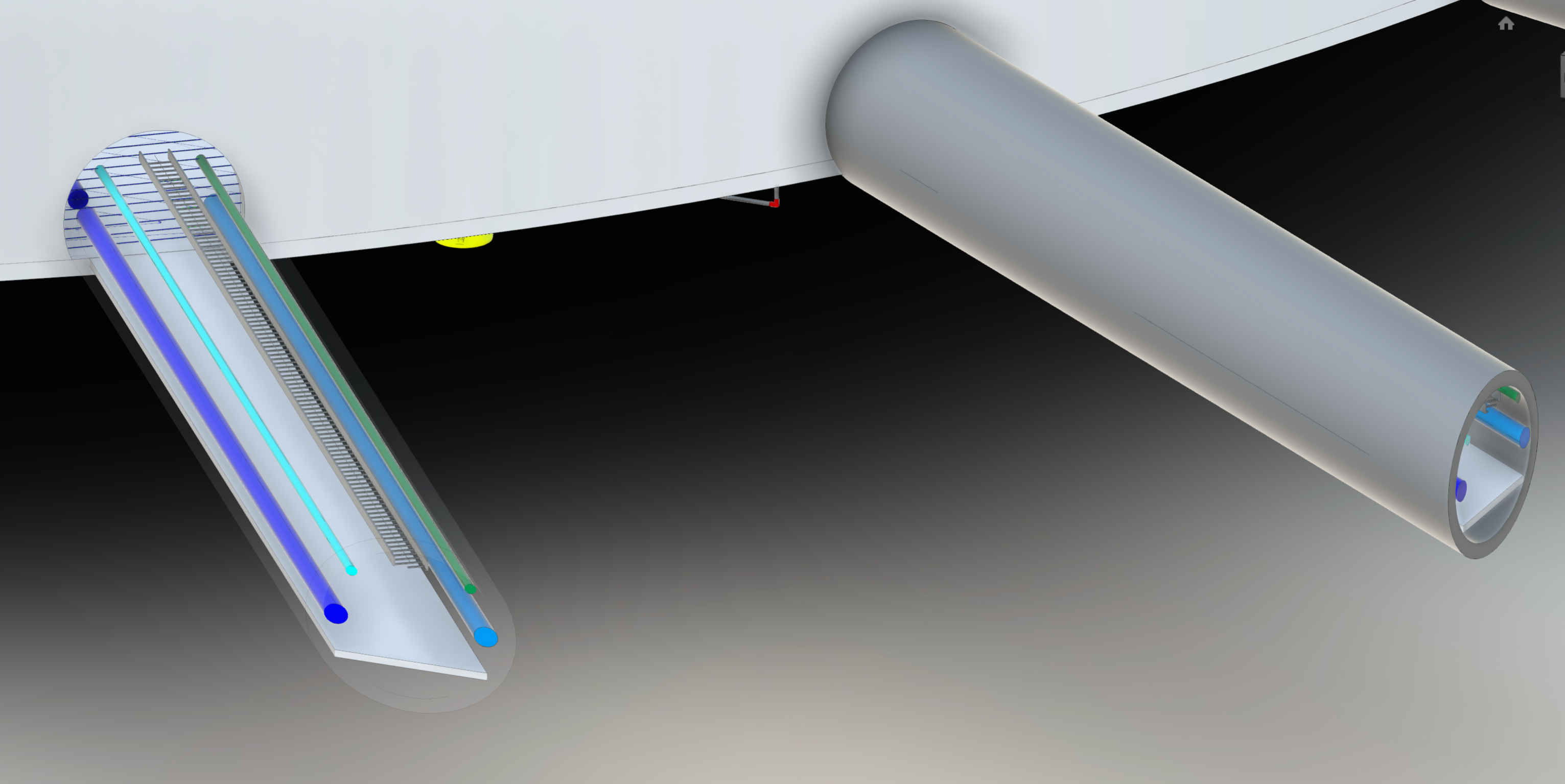 Über die Stollen / Tunnels sind die Slim Hole Leitungen (also der Wärmetauscher) angeschlossen.